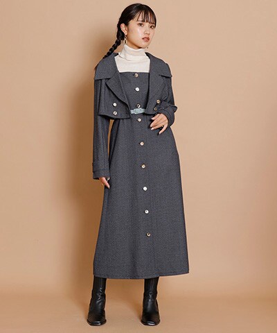 ビジューボタンファンシーツイードシャツミニワンピース