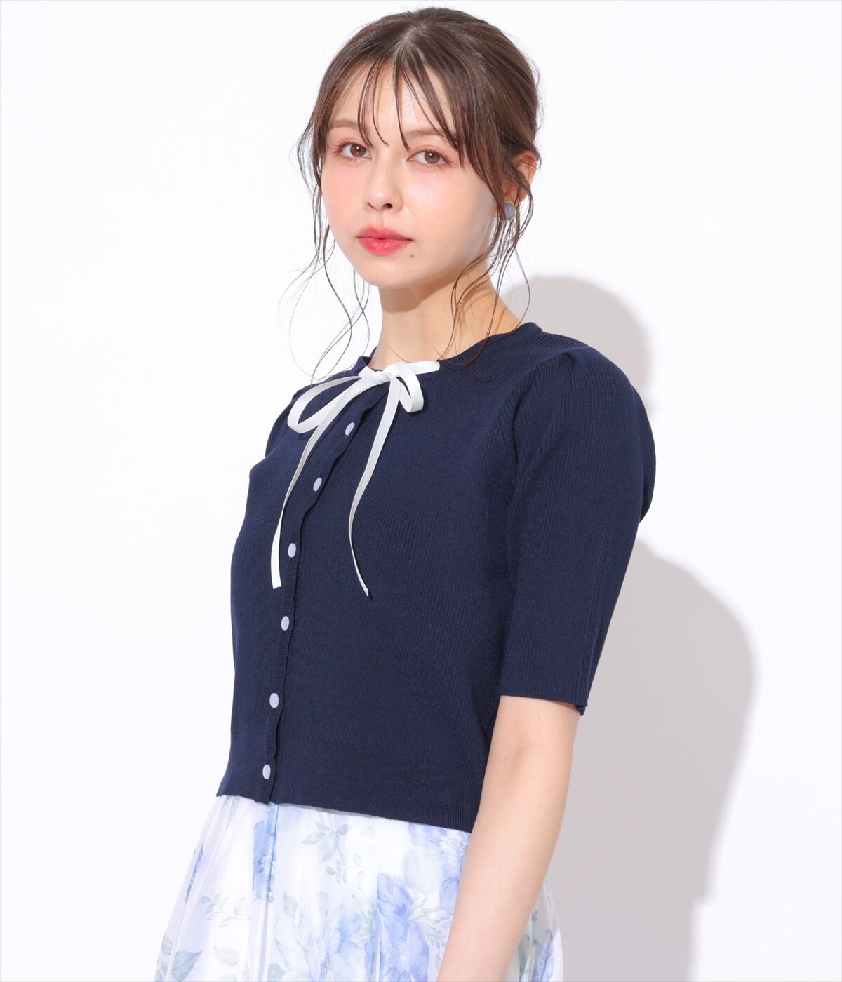 シンプルなリボンニット🎀アウトスタイルにしてもスッキリ着ていただけます♡程よくフィット感のあるニットで着心地がとっても良いです✨カーディガンにもなるので2WAYで着回ししていただけます✨スカートは夏らしい軽い素材で、ウエストも調整出来るストレスフリーなスカート♡女性らしいシルエットでキレイめスタイルからカジュアルにもお使いいただけます✨