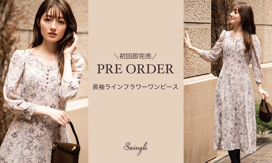 【Swingle】PRE ORDER!長袖ラインフラワーワンピース公式オンラインショップ|バーンデストローズ