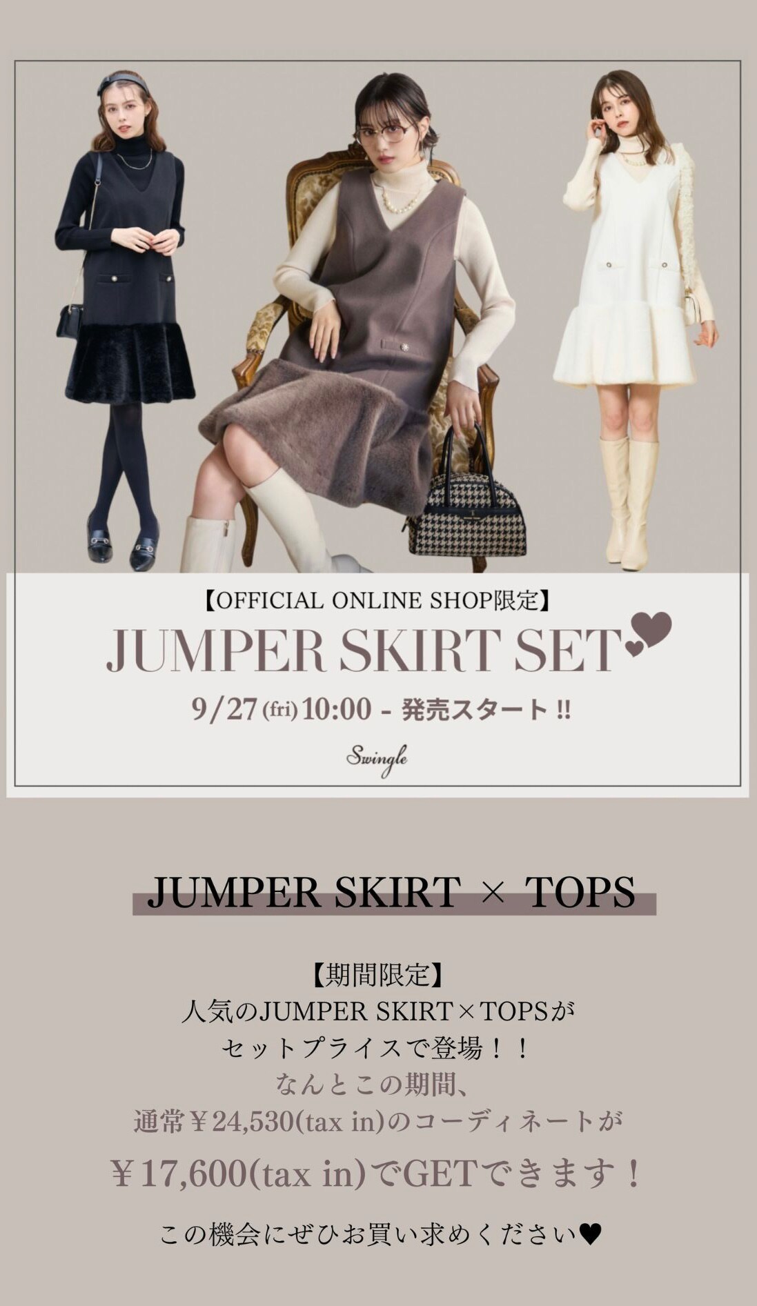 【Swingle】JUMPER SKIRT SET公式オンラインショップ|バーンデストローズ