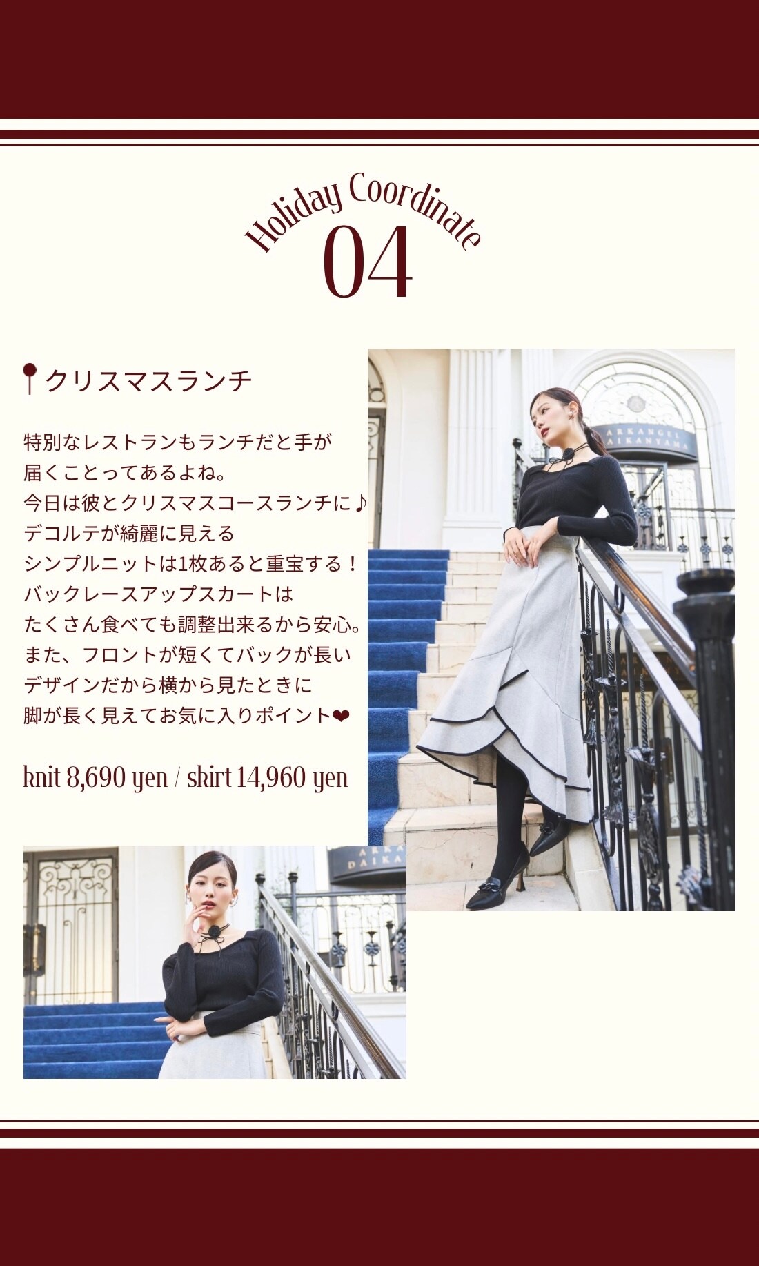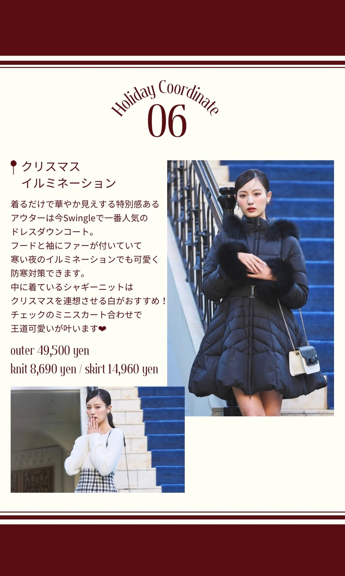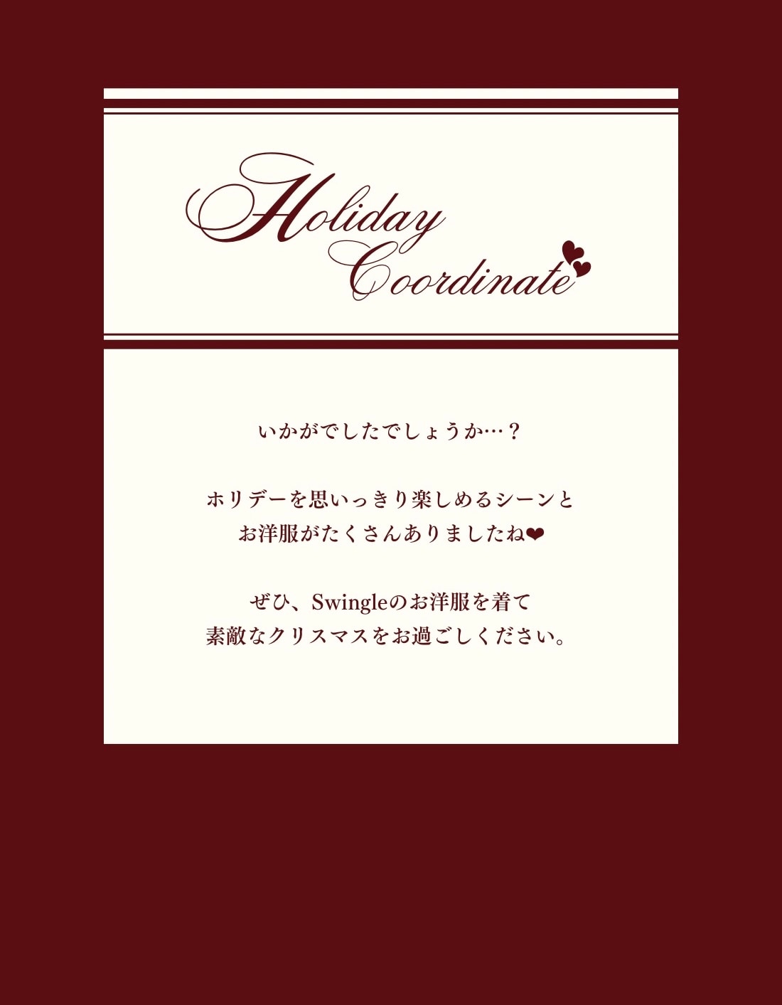 【Swingle】Holiday Coordinate - 鶴嶋乃愛さんが着る、シーン別ホリデーコーデ -公式オンラインショップ|バーンデストローズ