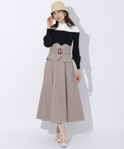 ラッフル切替フレアスカート