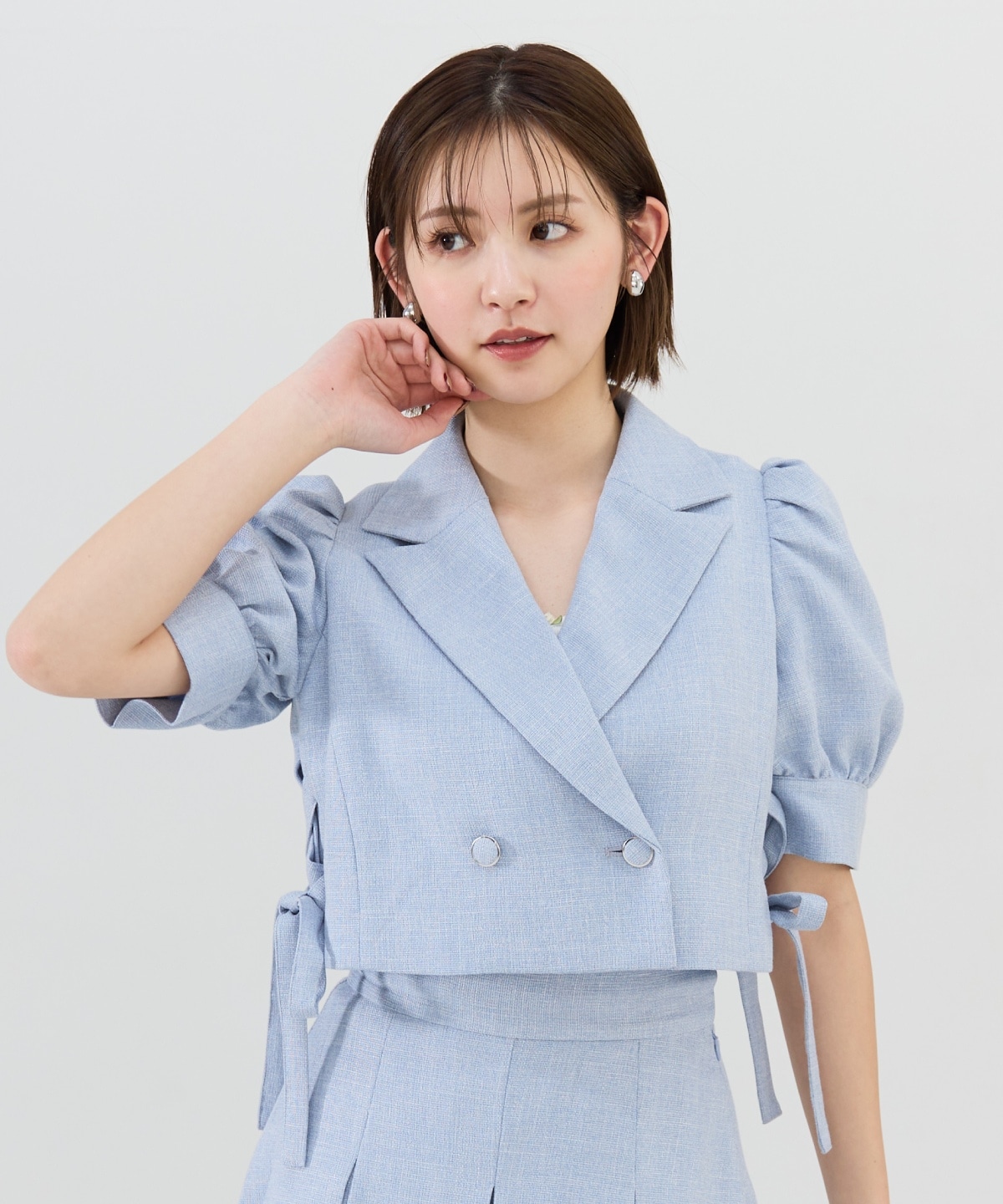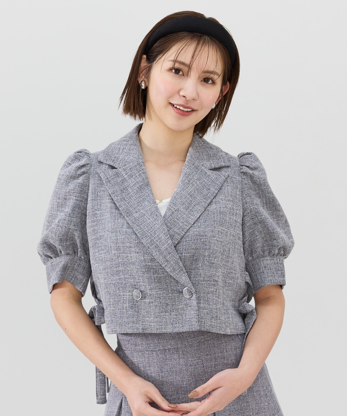 【セットアップ可能】ヘリンボーンチェックテーラーショートジャケット