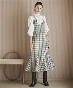 チェックツイードビスチェ風ワンピース |
