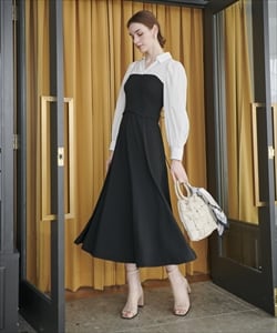 ヨーク切替ビスチェ風シャツワンピース |