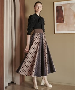 ウエストリブフロッキードットロングスカート |