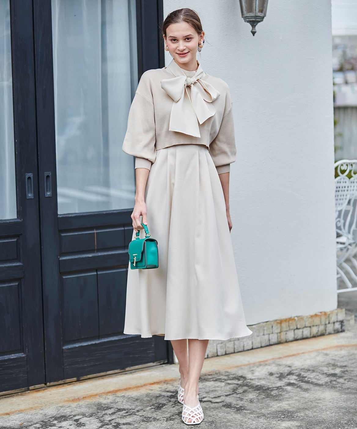 【3/9(THU)発売】クロップド丈ニット+ボウタイワンピース |