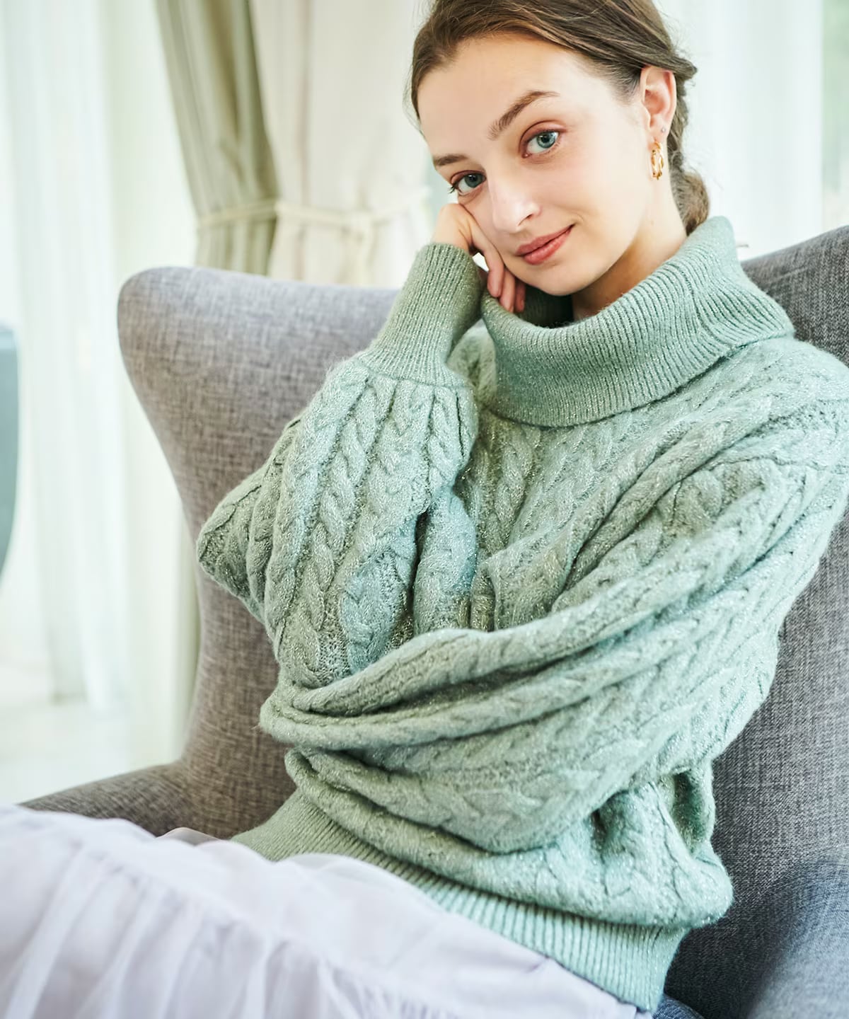 モヘアライクオフタートルケーブルプルオーバー |