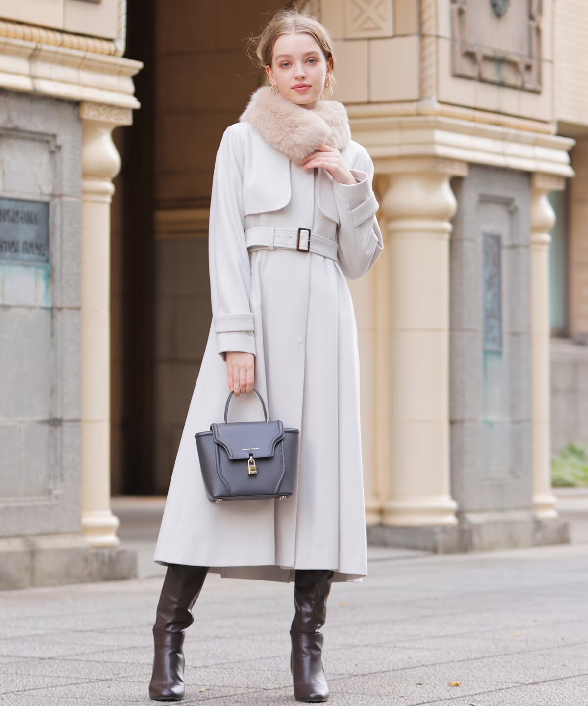 【WEB・阪急限定】FOXファー付きステンカラーコート |