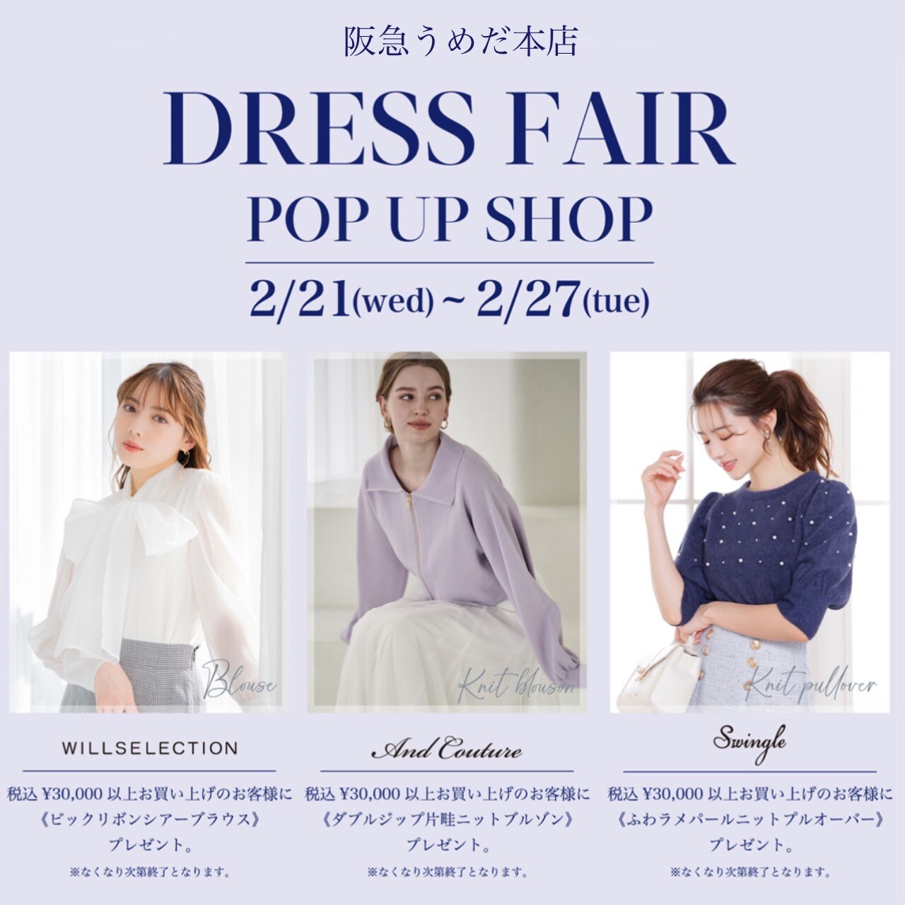 ■ 【本日よりスタート!!】2/21(WED)~2/27(TUE)阪急うめだ本店にて期間限定POP UP SHOPがオープン!!