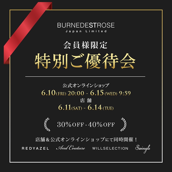店舗:【6/14(火)まで!】/ 公式オンラインショップ:【6/15(水)09:59まで!】 |