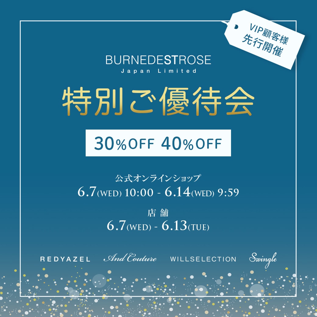 ▼公式オンラインショップ▼ 期間: 6/7(水)10:00 ~ 6/14(水)9:59 ※ご優待価格でのお買い物は、公式オンラインショップにてログインが必要です 。 ※お値引き後の価格はカートページにてご確認いただけます。 ▼店舗▼ 期間: 6/7(水) ~ 6/13(火) ※こちらの画面を店舗スタッフまでご提示ください。 ※対象商品は店舗スタッフまでご確認下さい。 みなさまのご来店をスタッフ一同心よりお待ちしております。 |