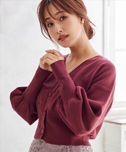 WINTER切替ロングリブVネックカーディガン |