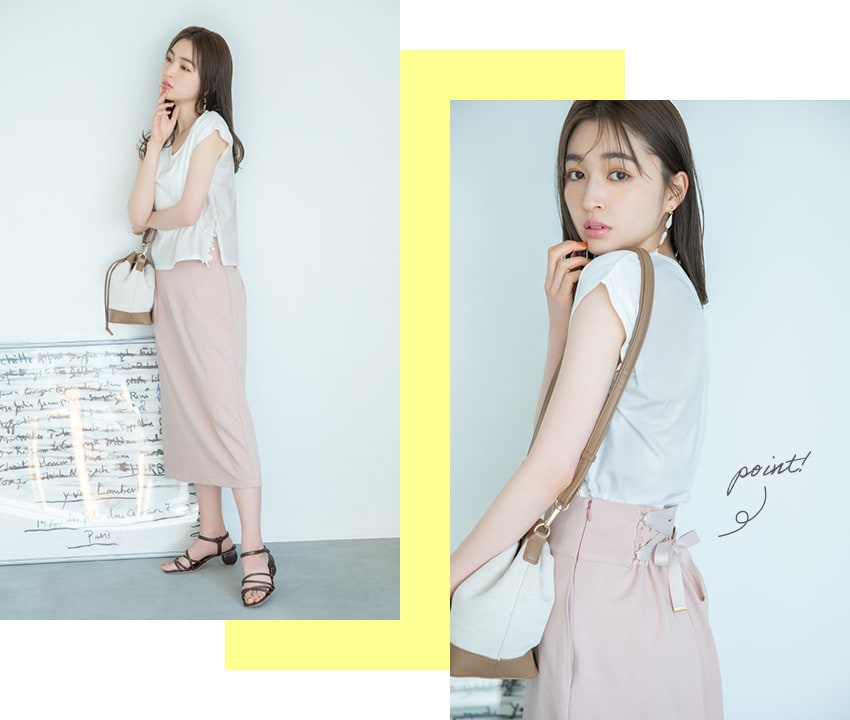 編み上げリボンがポイント!カットソーをインしてもかわいく着ていただけます♪