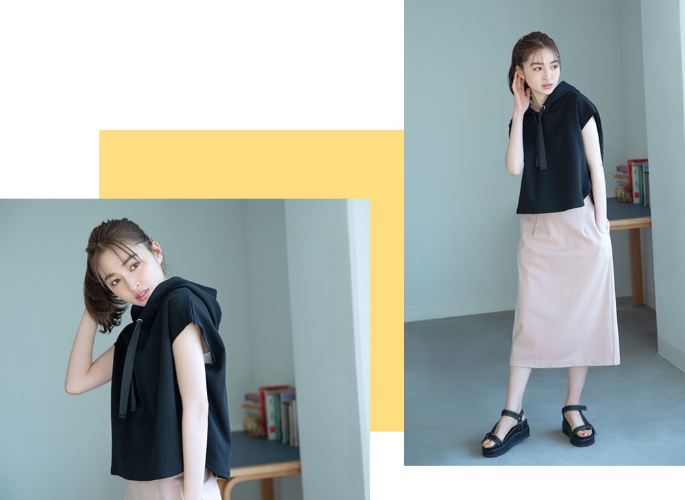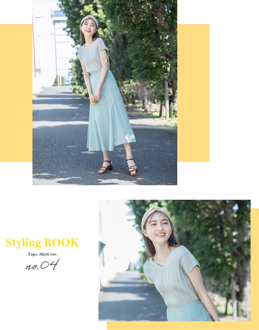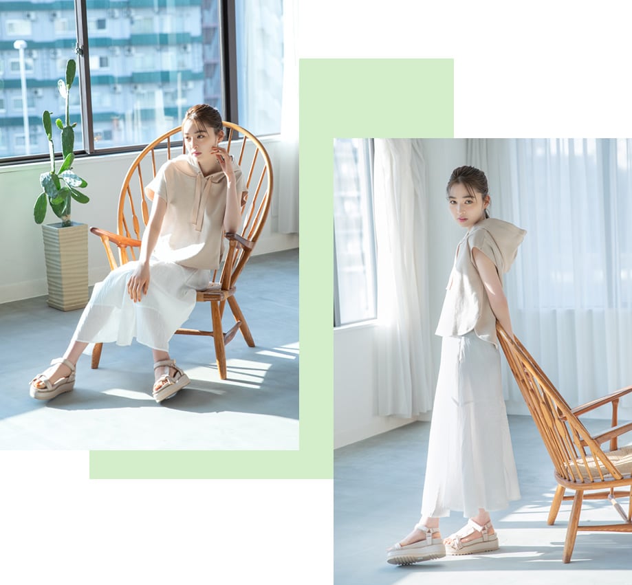 Tops ¥5,940 Skirt ¥9,900 Sandals ¥9,900