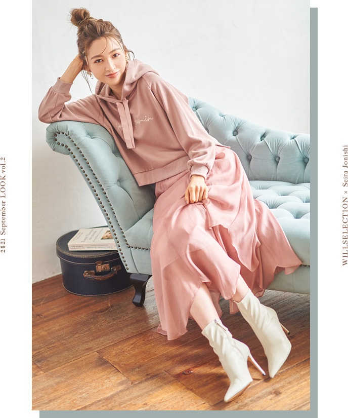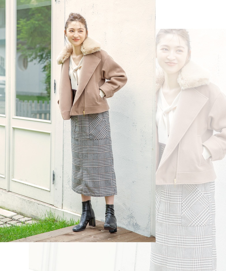 Tops ¥7,920(tax in) Skirt ¥12,100(tax in) Coat ¥17,600(tax in)